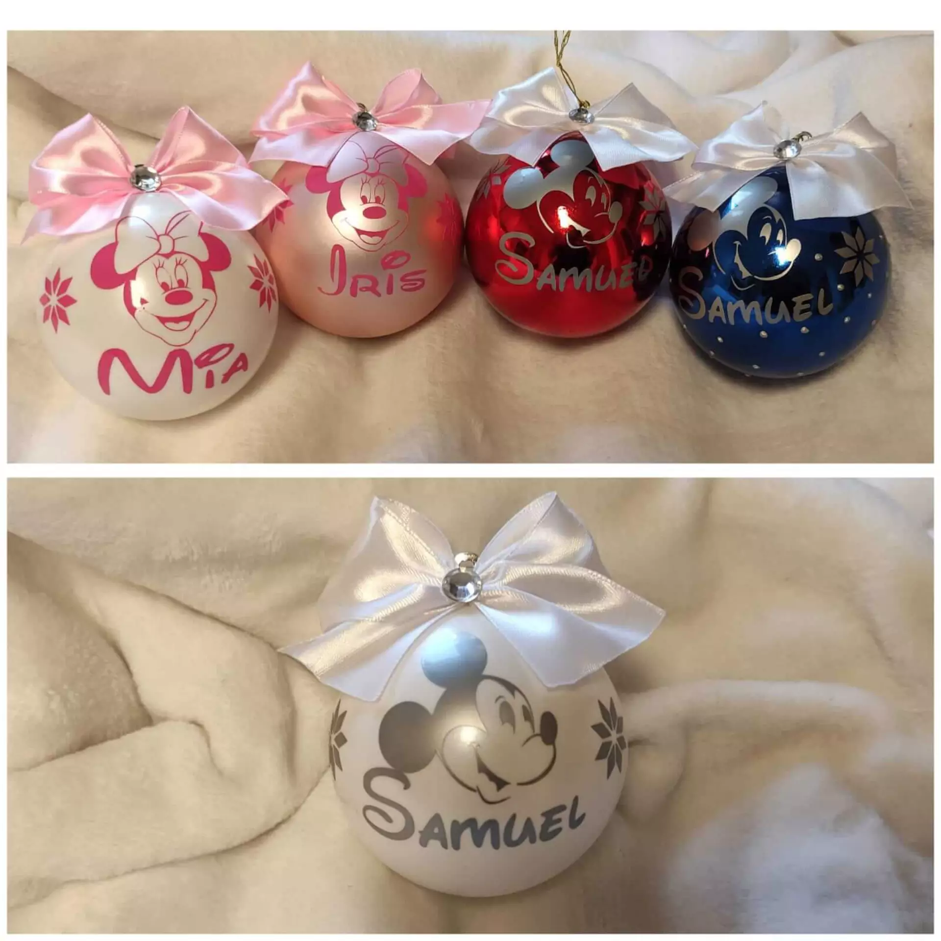 - Bolas decoradas con pegatinas y un lazo de satin u organza de diferentes colores.