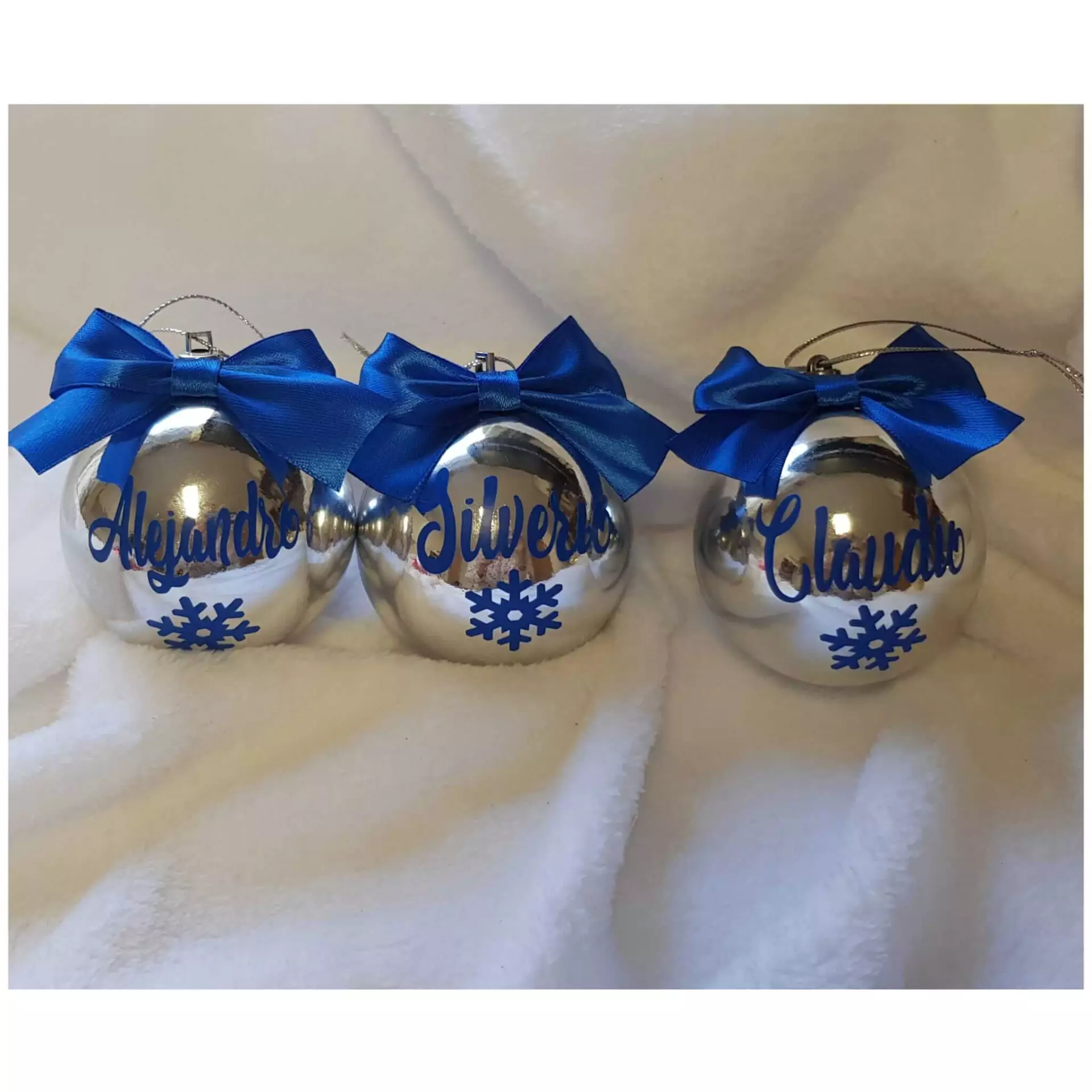 - Bolas decoradas con pegatinas y un lazo de satin u organza de diferentes colores.