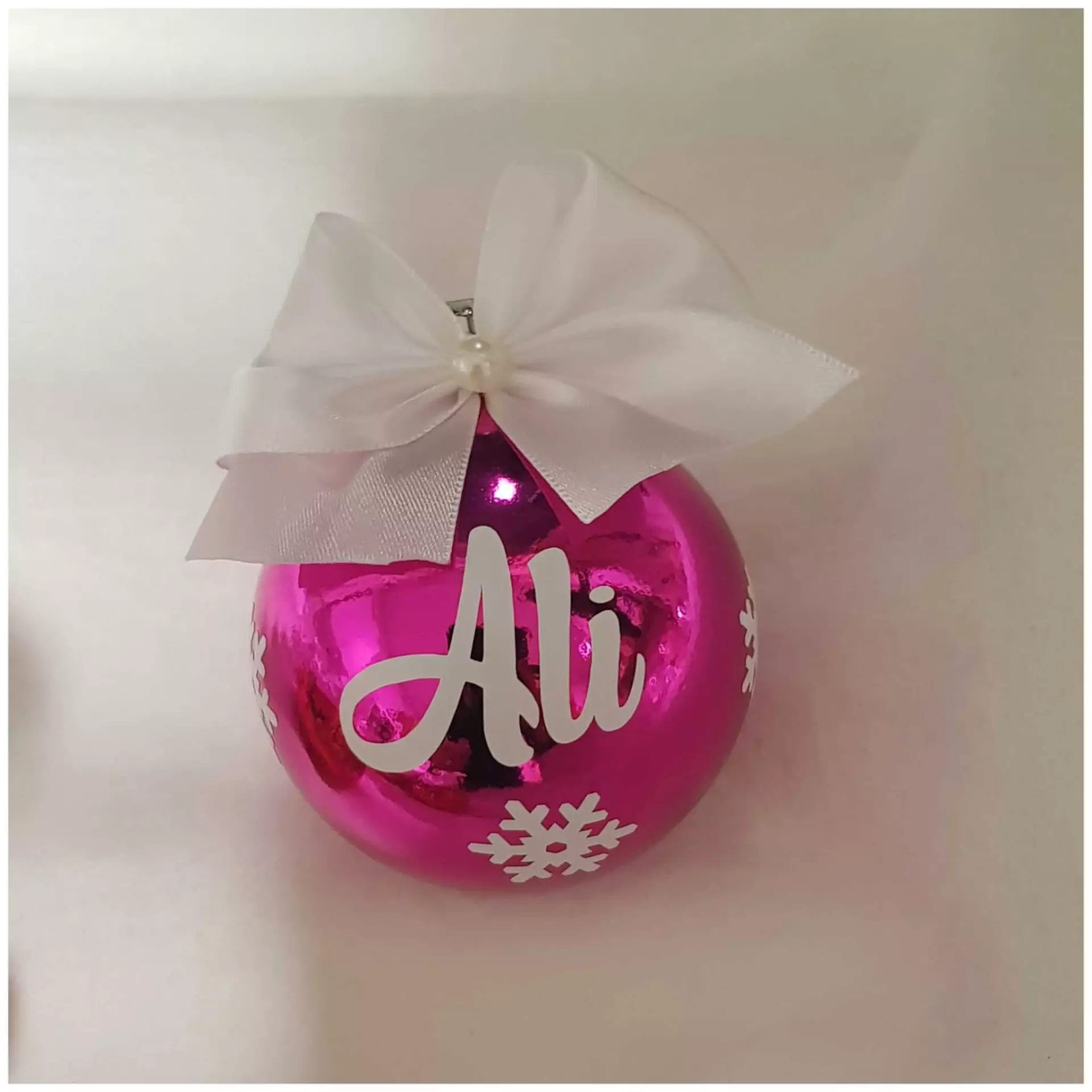 - Bolas decoradas con pegatinas y un lazo de satin u organza de diferentes colores.