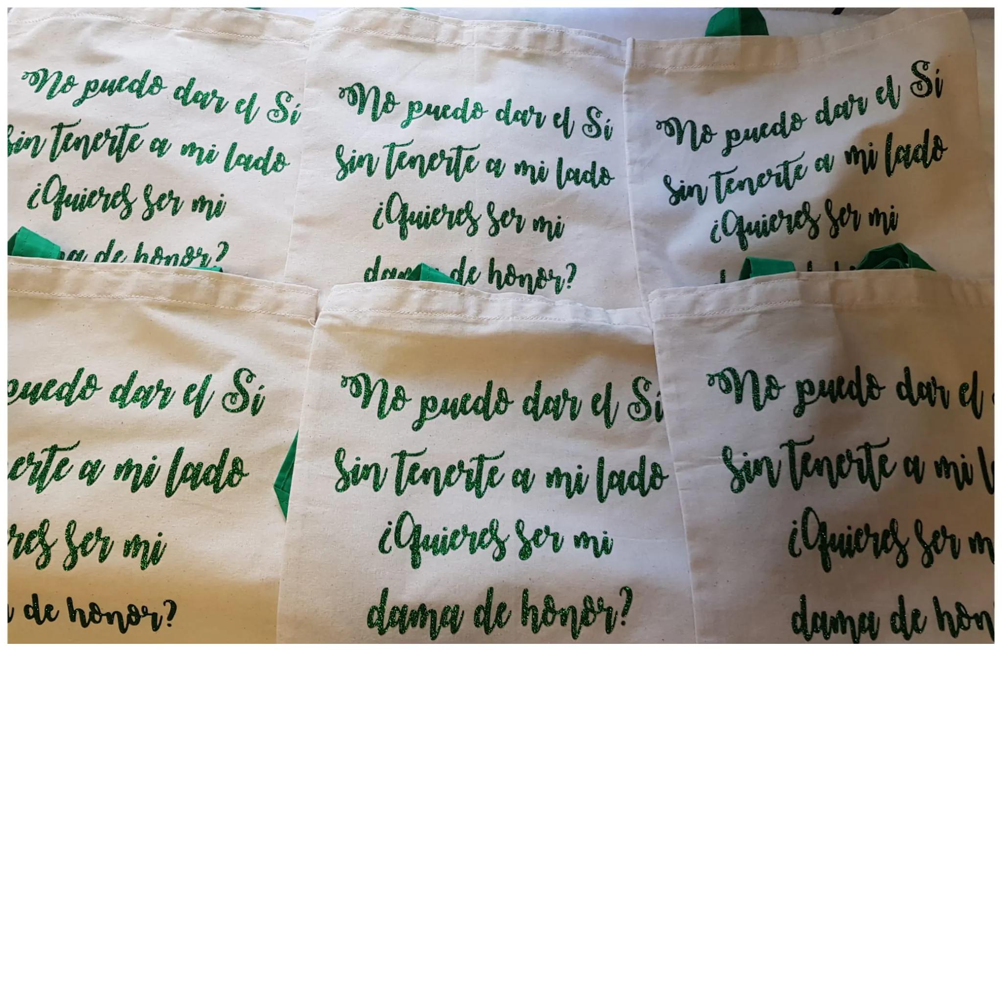 Estas bolsas de tela personalizadas son una opción original como detalle de boda, para damas de honor, invitadas o incluso para preparar kits de bienvenida. Además, al estar fabricada en algodón, es resistente y reutilizable, una alternativa práctica y duradera frente a las bolsas de plástico.
