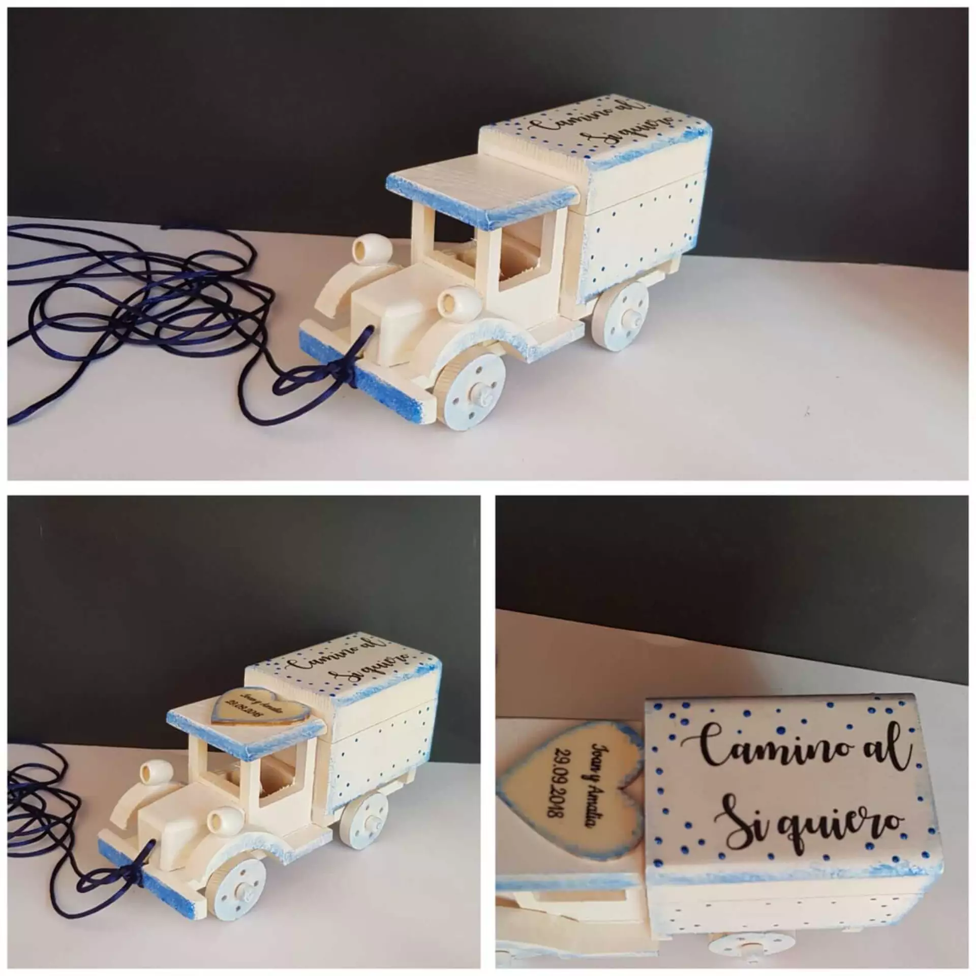 - Camion de madera para arras pintado y decorado a mano.