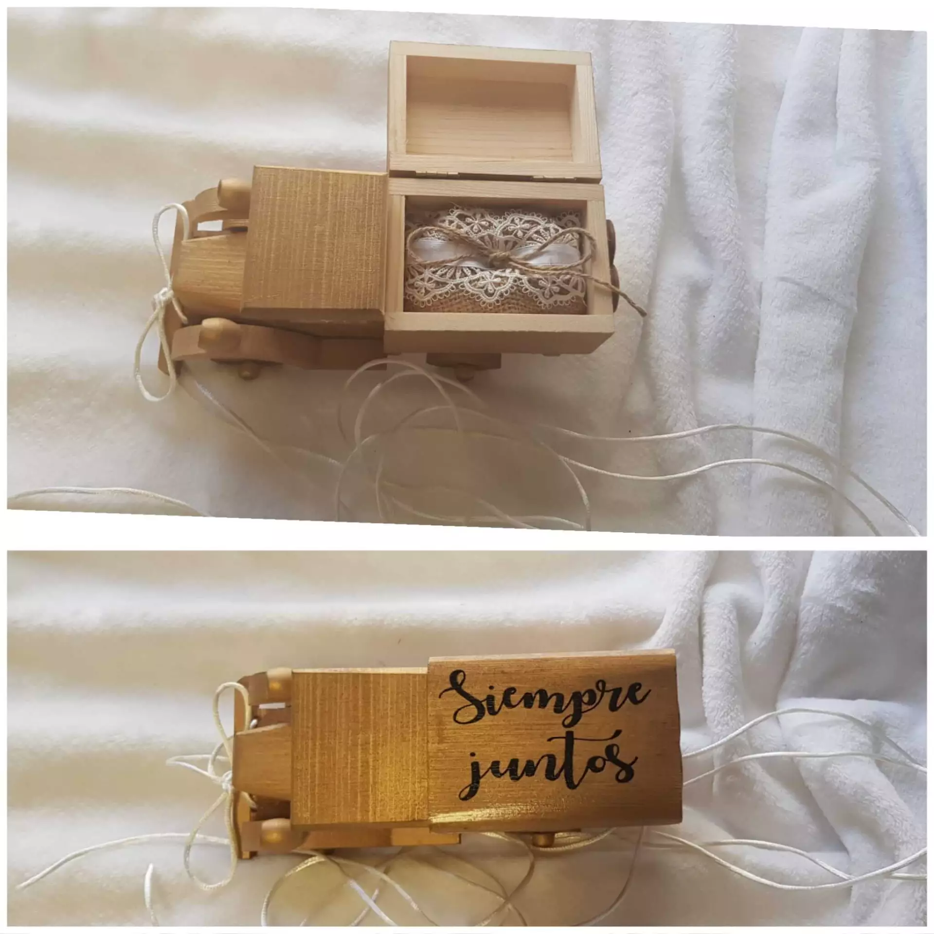 - Camion de madera porta alianzas,pintado y decorado a mano.