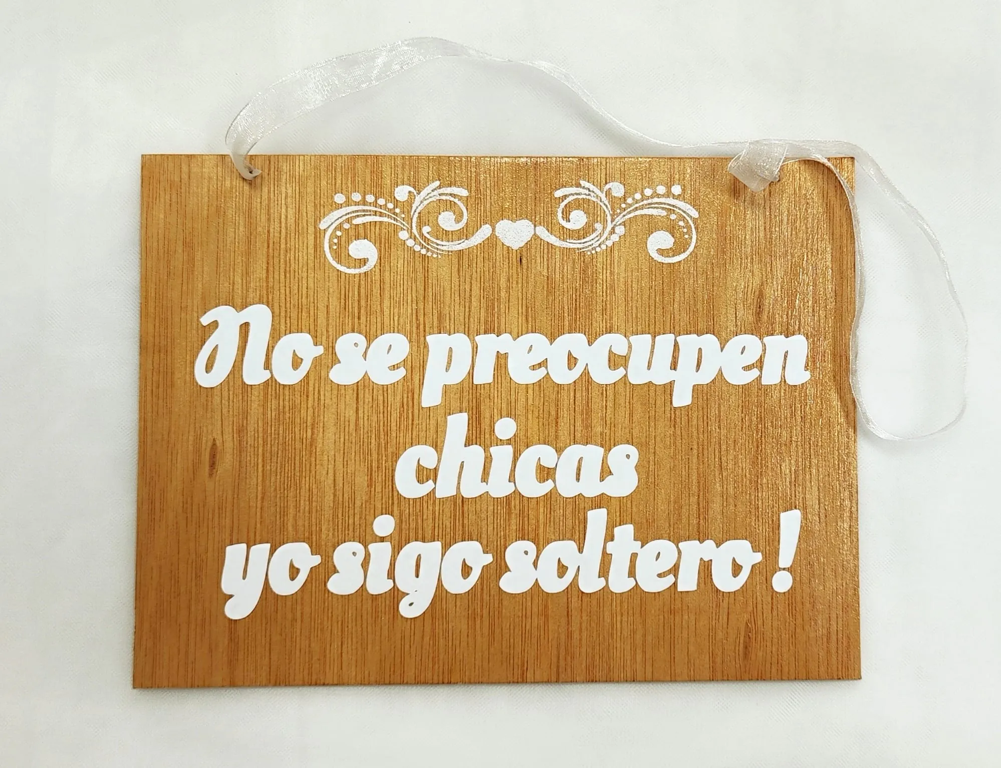 Cartel madera boda “No se preocupen chicas, sigo soltero”