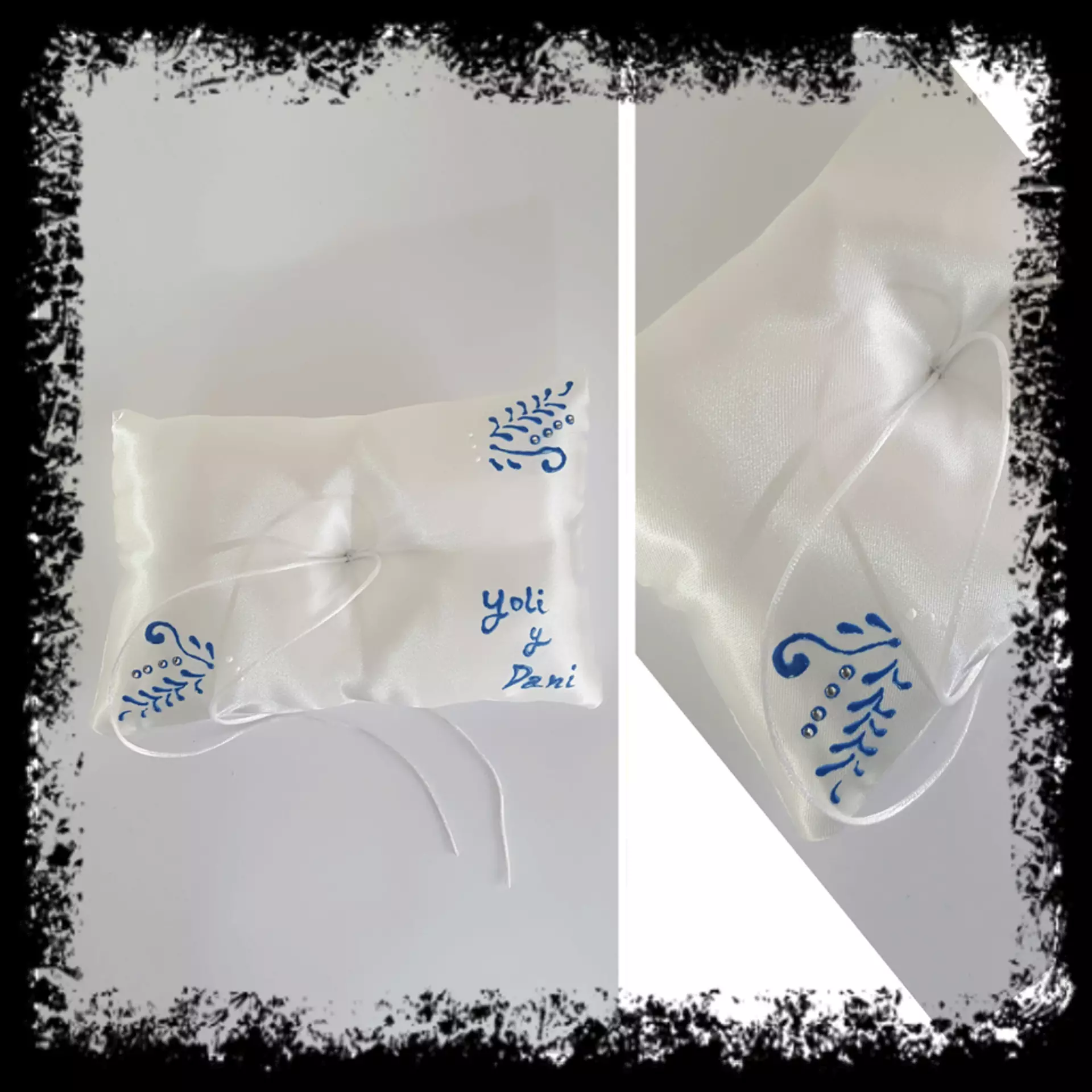 Cojines hechos a mano en difrentes diseños y colores , ese toque especial para llevar los anillos de boda