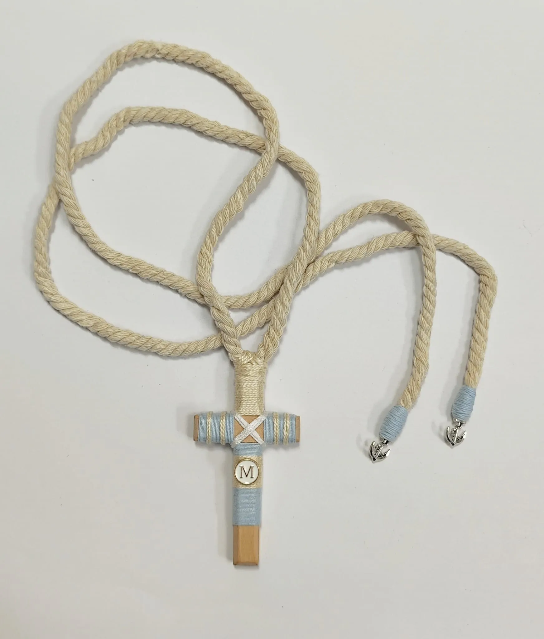 Cruz de Comunión para Niño Azul Celeste y Beige