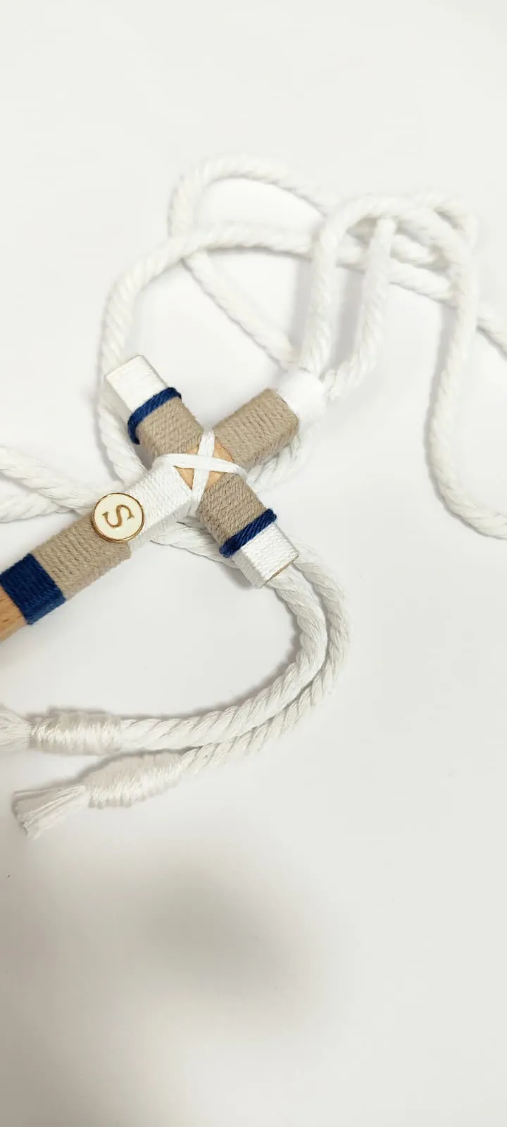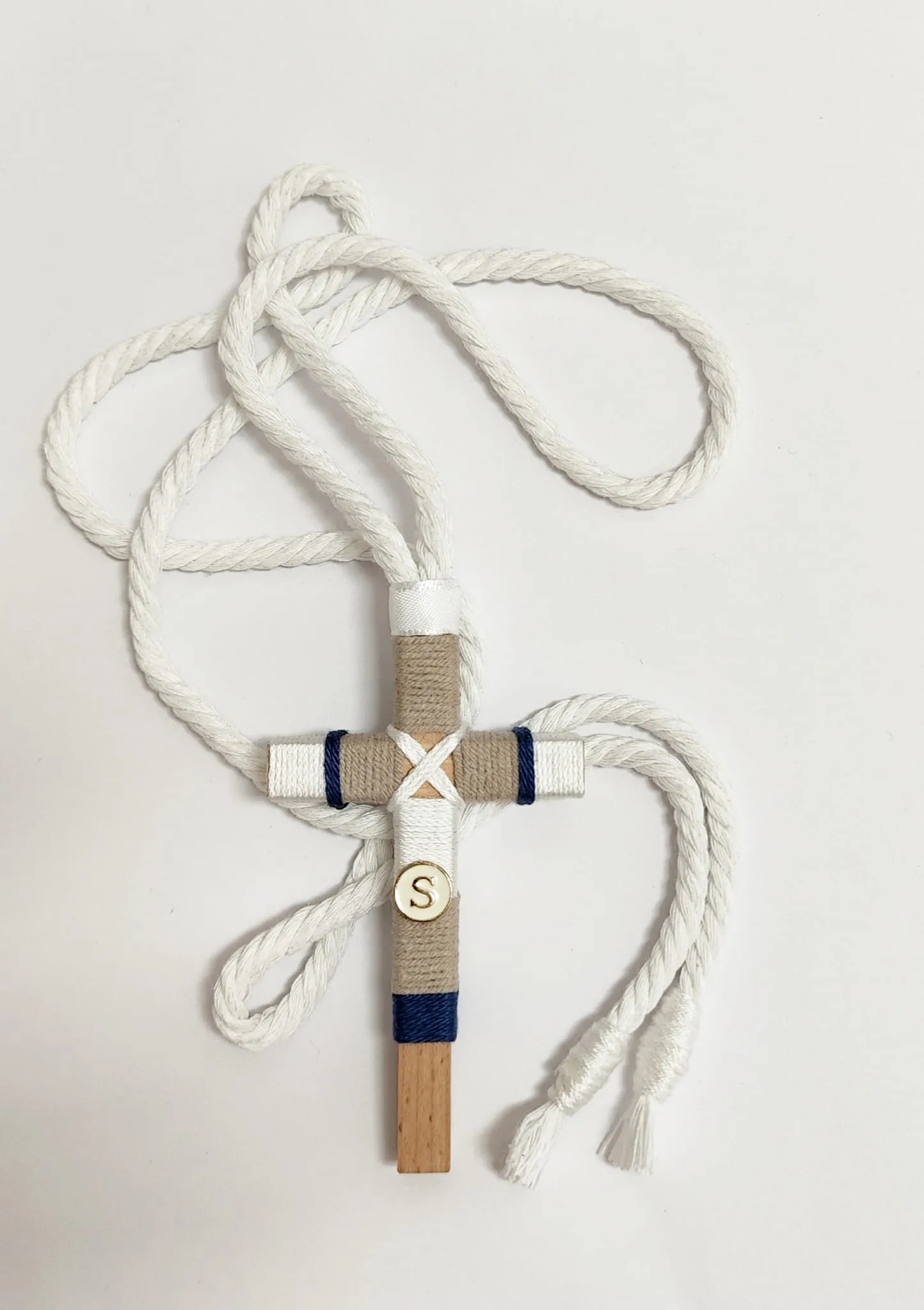 Cruz de Comunión para Niño Beige, Blanco y Azul Marino