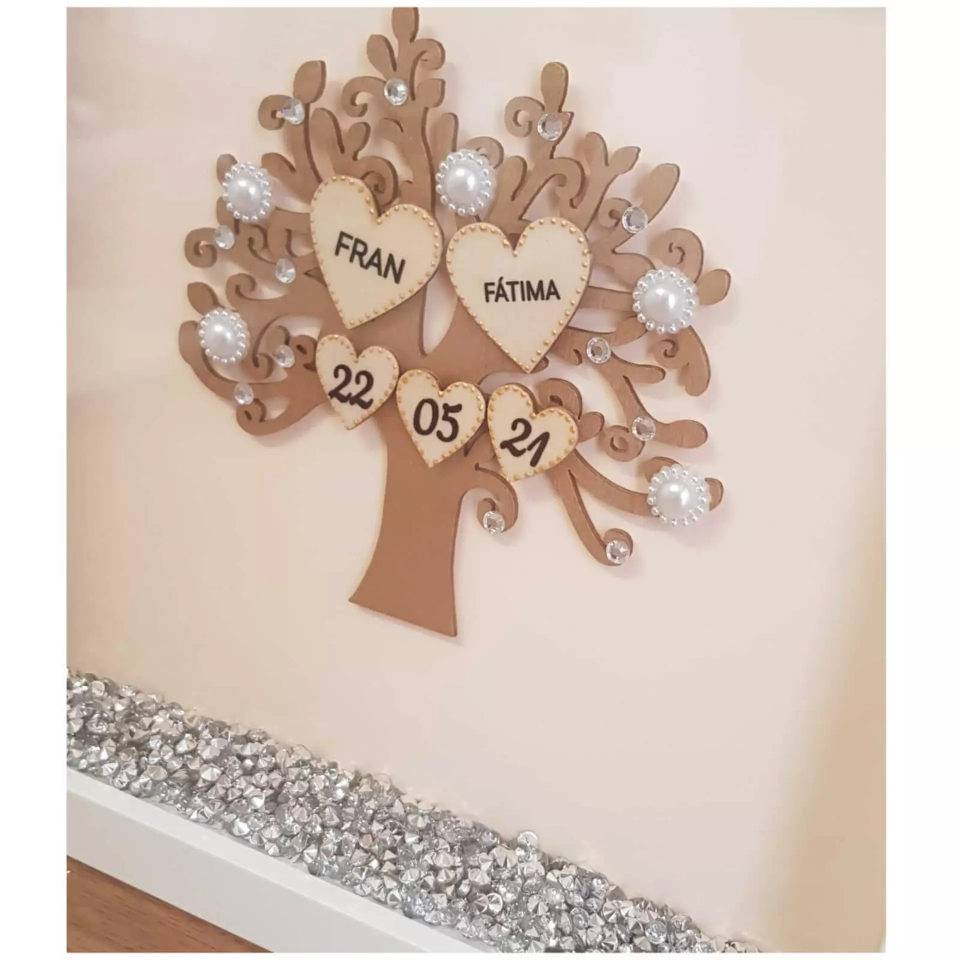 - Realizado con un árbol de madera pintado a mano decorado con varios accesorios de brillantes y perlas