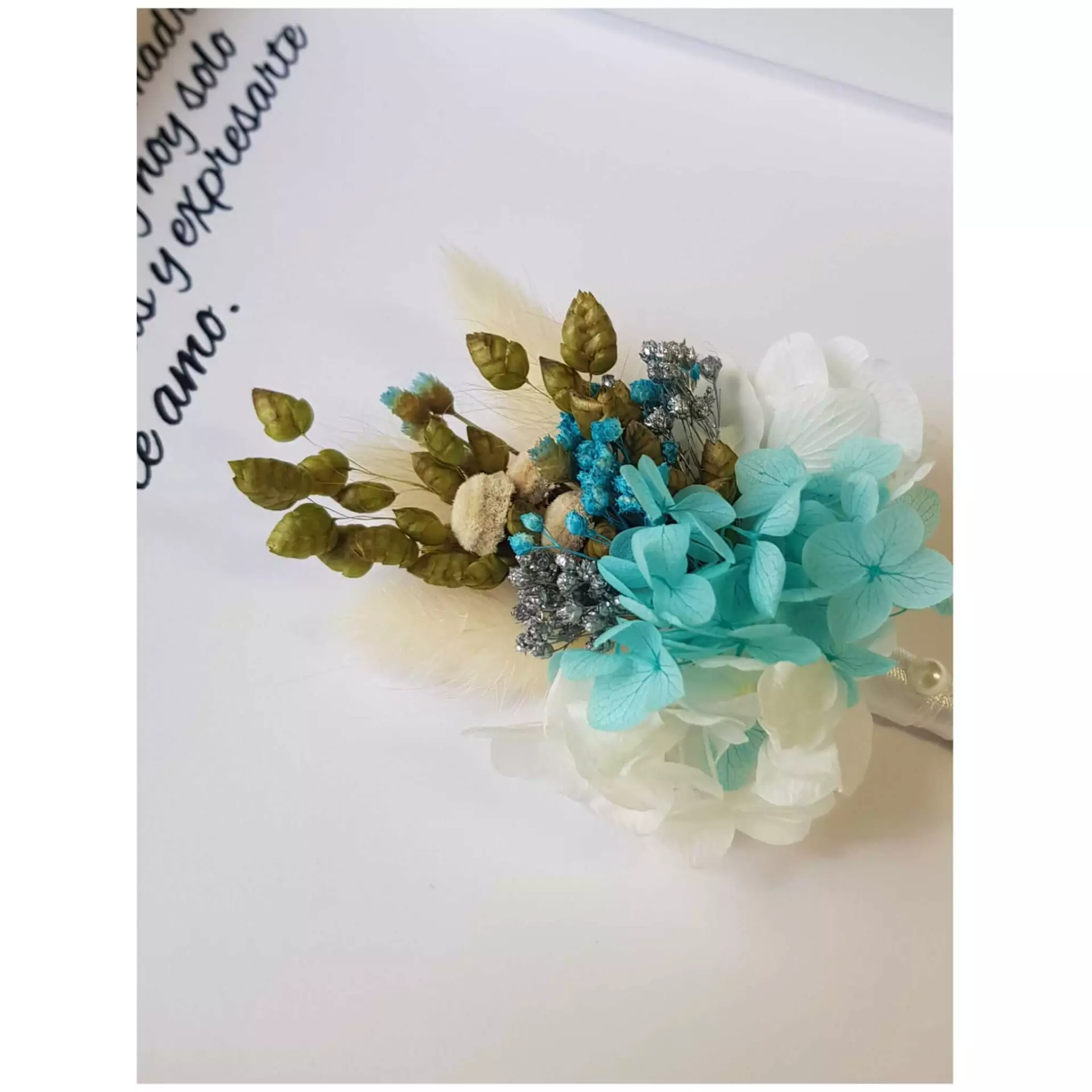 - Cuadro personalizado realizado con flores preservadas y frase emotiva para la persona importante de tu vida.