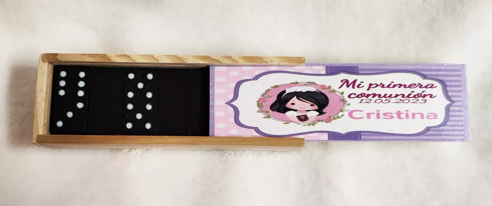 Juego Clásico de Dominó Personalizado en Madera para Comunión