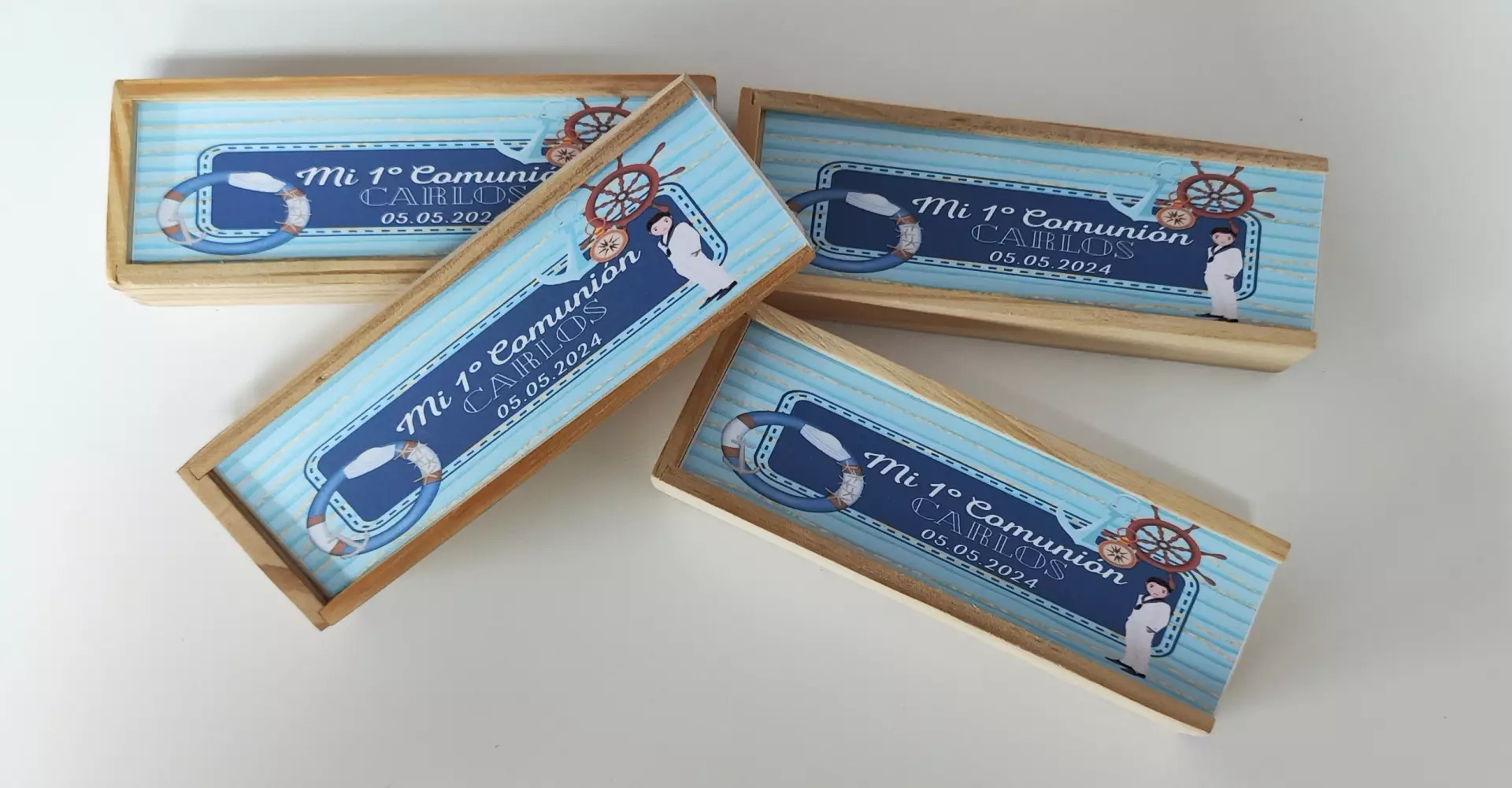 Juego Clásico de Dominó Personalizado en Madera para Comunión