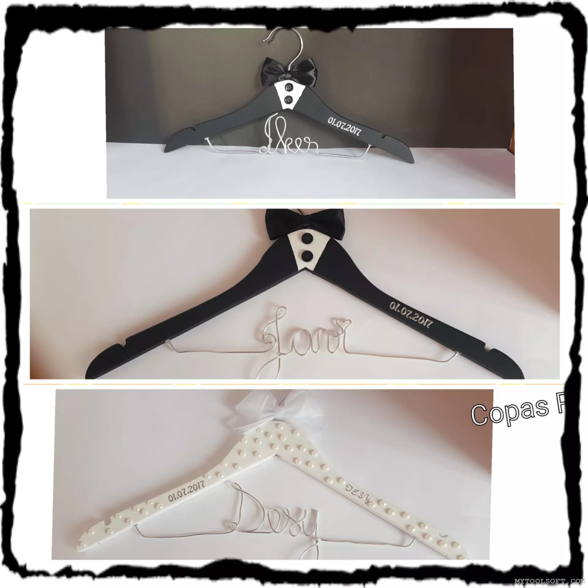 Cuando se hace el pedido necesitamos la foto o las fotos con cual modelo te gusta mas, los nombres y fecha de la boda.