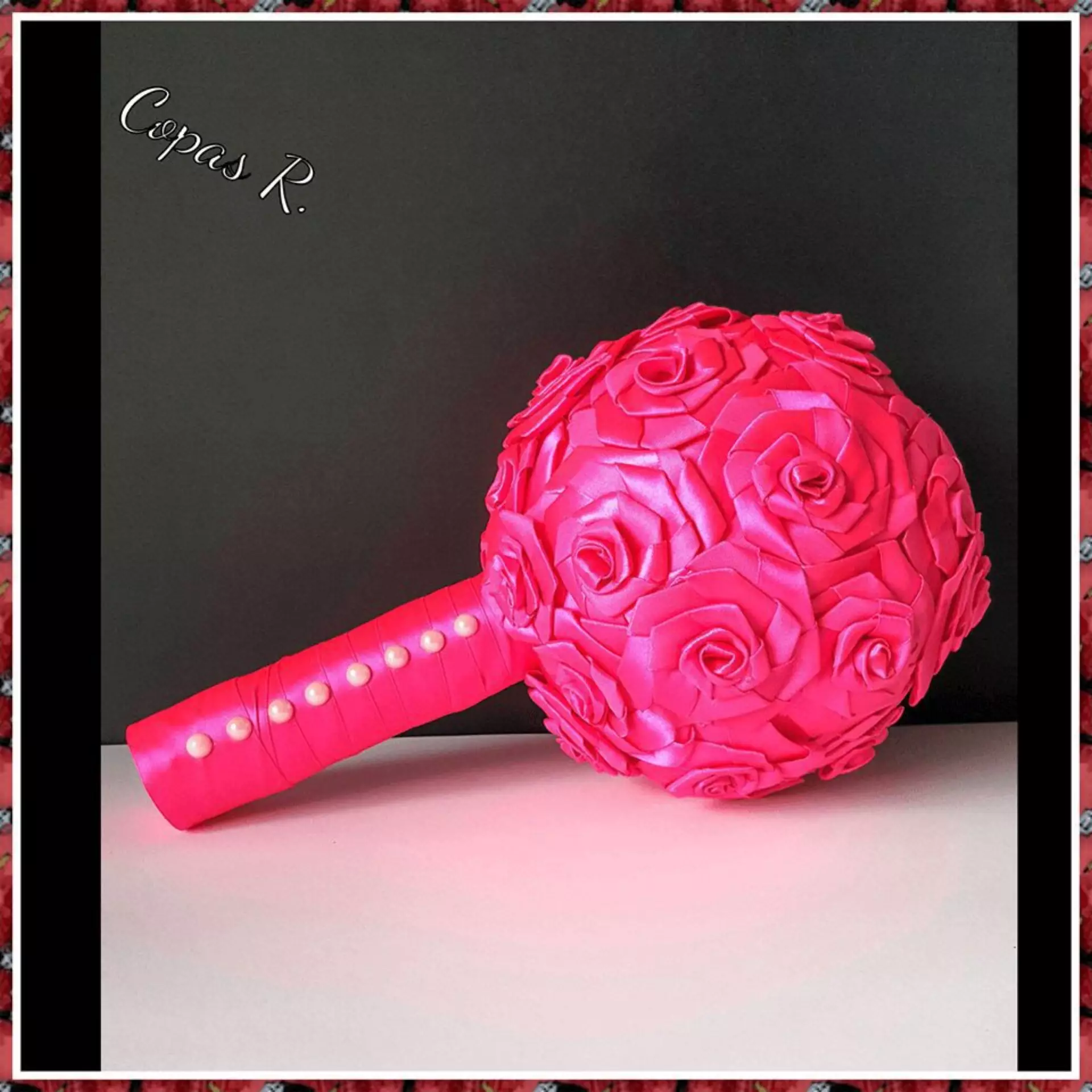 Diferentes tipos de ramos hechos en una base de porexpan y diferentes materiales como cinta de satin,rosas de goma eva etc.