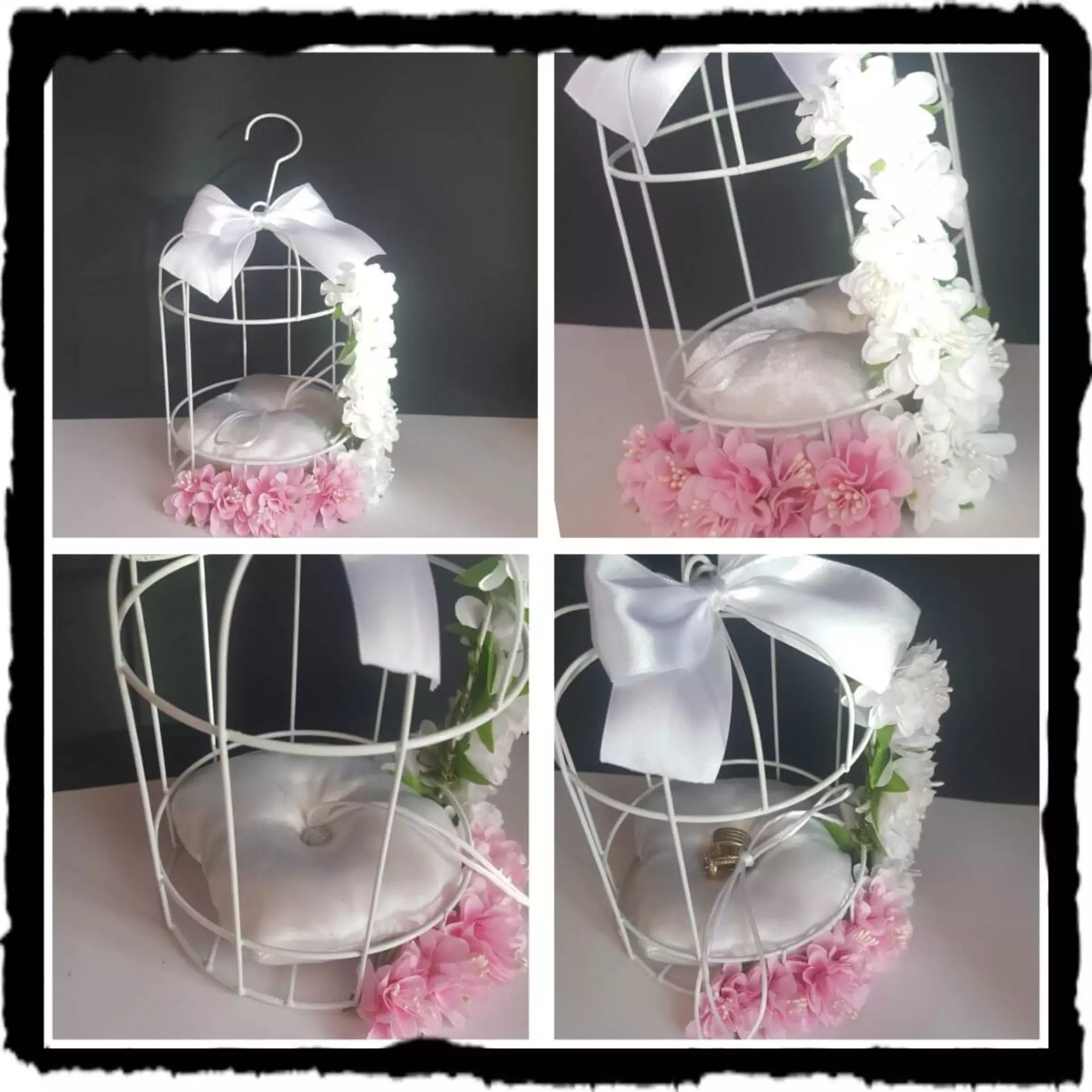Elige entre nuestros diseños, bolas con rosas, cajas decoradas, jaula con flores etc.