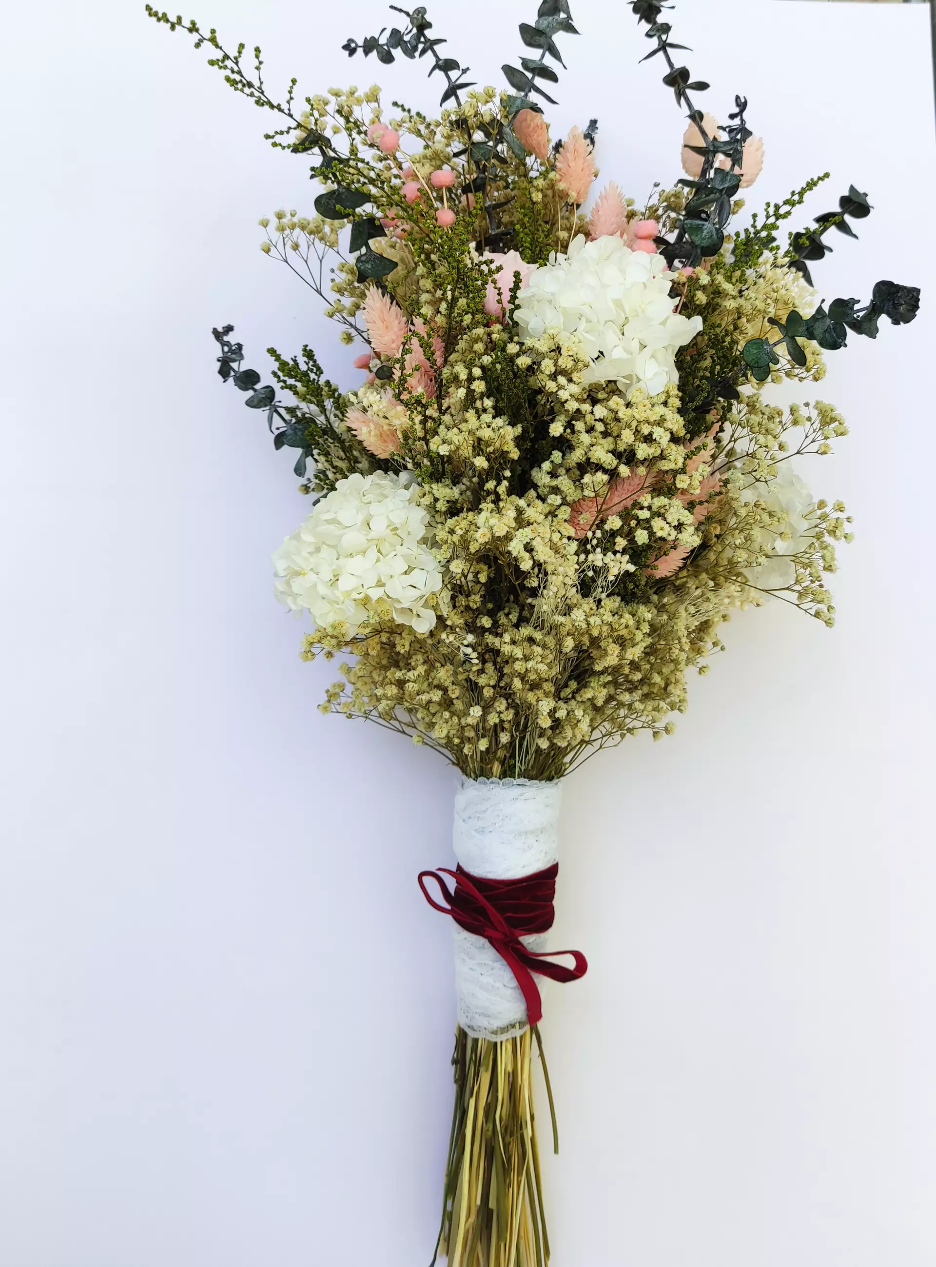 Disponemos de una gama larga para novia, damas ,damitas de honor,madrina y si quieres guardar tu ramo como recuerdo también disponemos de ramos ideales para tirar a las solteras,un bonito regalo para tus amigas. - Ramo de novia compuesto de flores preservadas y naturales secas